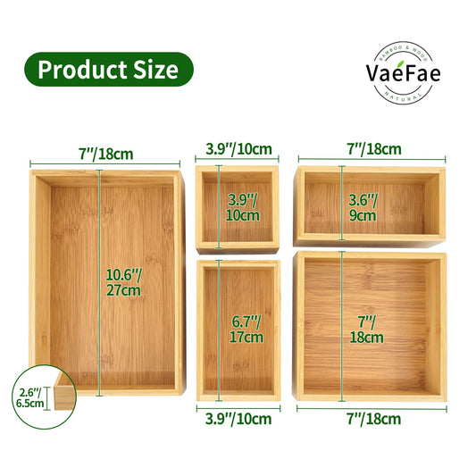 Bamboo Nature Drawer Organizers 5 Set